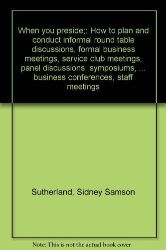 Free When you preside : how to plan and conduct informal round table discussions, formal business meetings, service club meetings, panel discussions, symposiums, and forums, conferences, workshops, business conferences, staff meetings PDF Download